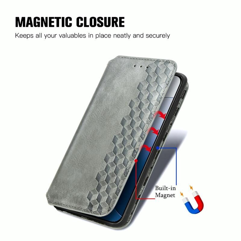 Για Xiaomi 14 Pro Cubic Grid Pressed μαγνητική δερμάτινη θήκη τηλεφώνου (γκρι)