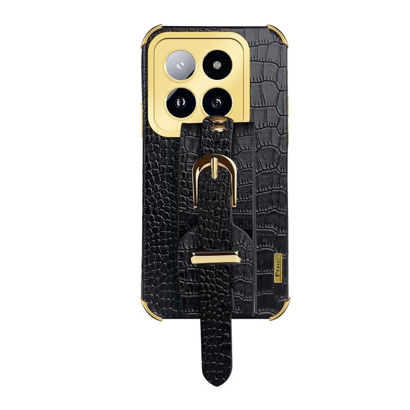 Θήκη κινητού τηλεφώνου Xiaomi 14 Pro με επικάλυψη από δέρμα κροκόδειλου και λουρί καρπού (Λευκό)