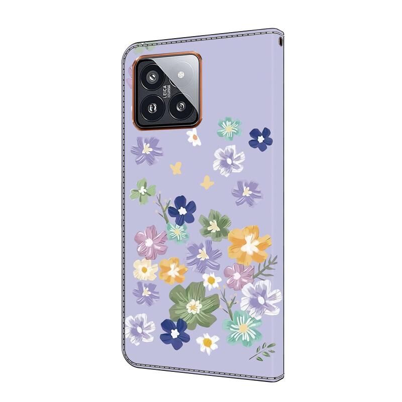 Θήκη τηλεφώνου Xiaomi 14 Pro από φρέσκο ​​βαμμένο δέρμα (Μωβ λουλούδια ζωγραφικής με λάδι)