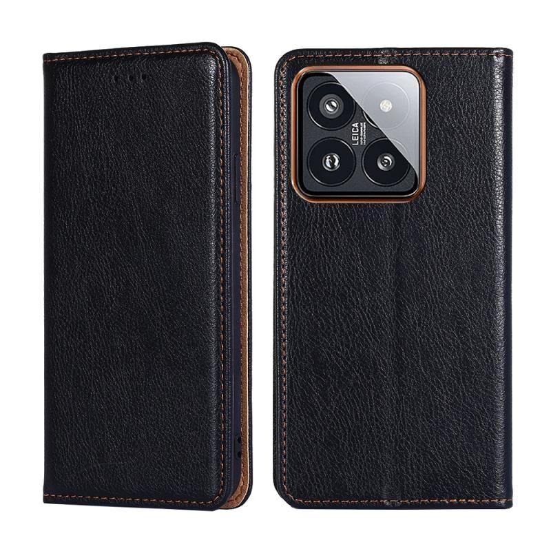 Για Xiaomi 14 Pro Gloss Oil Solid Color Μαγνητική δερμάτινη θήκη τηλεφώνου (μαύρο)