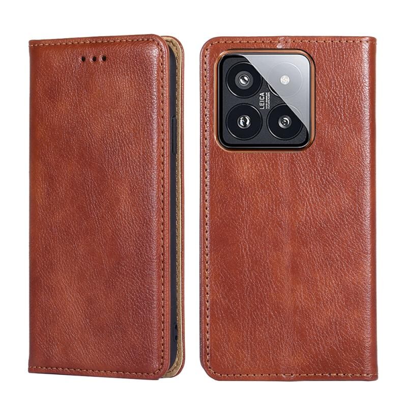 Για Xiaomi 14 Pro Gloss Oil Solid Color Μαγνητική δερμάτινη θήκη τηλεφώνου (καφέ)