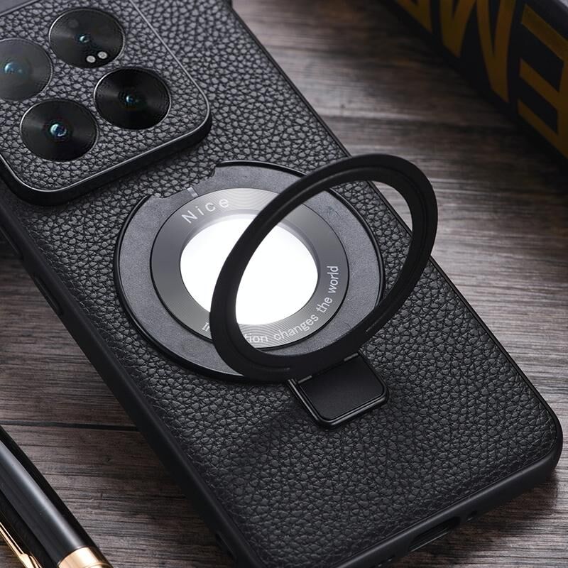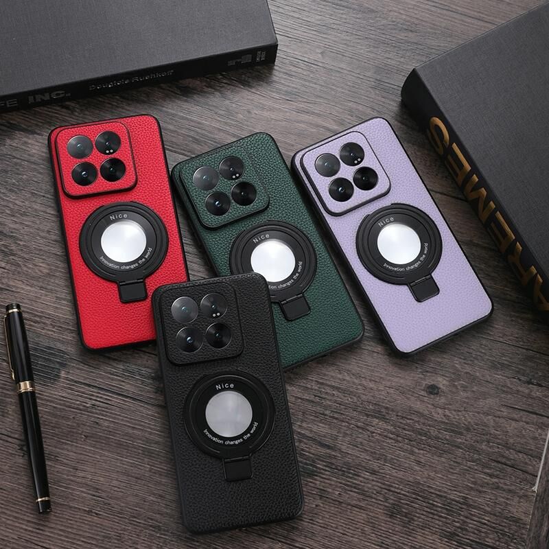 Για Xiaomi 14 Pro κάτοχος μεγεθυντικού φακού Litchi Υφή PU υπόθεση τηλεφώνου (μωβ)