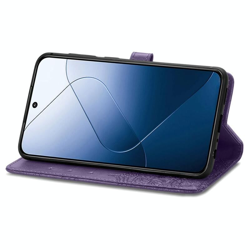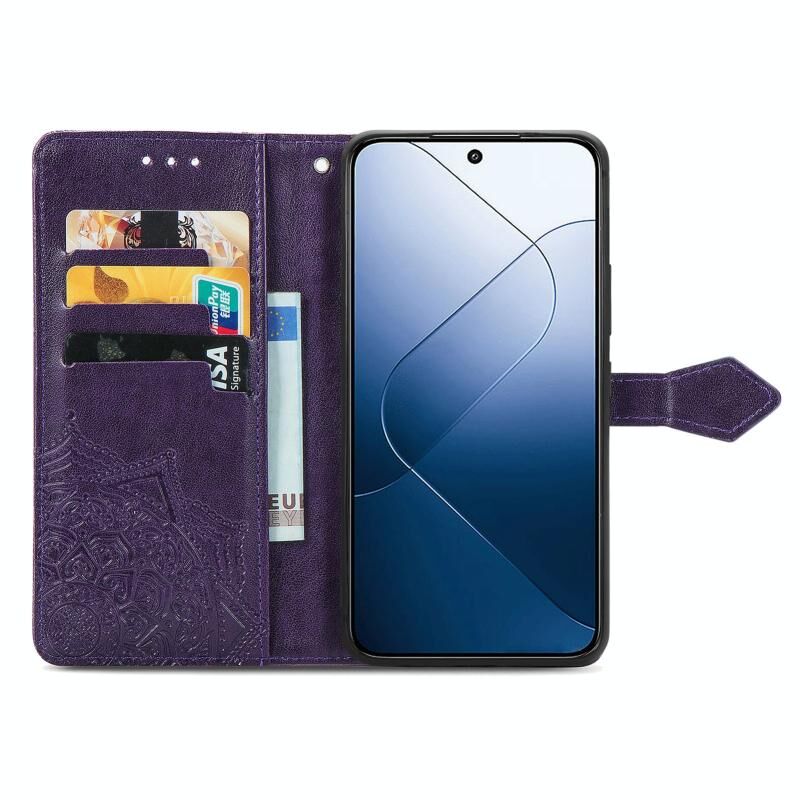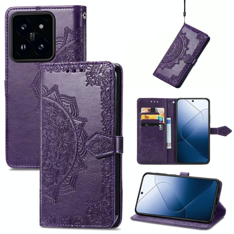 Για Xiaomi 14 Pro Mandala λουλούδι ανάγλυφο δερμάτινη θήκη τηλεφώνου (μωβ)