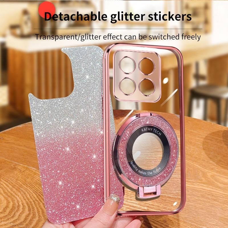 Για Xiaomi 14 Pro Επιμεταλλωμένο βαθμιδωτή Glitter Γύρος κάτοχος TPU τηλέφωνο υπόθεση (μαύρο)