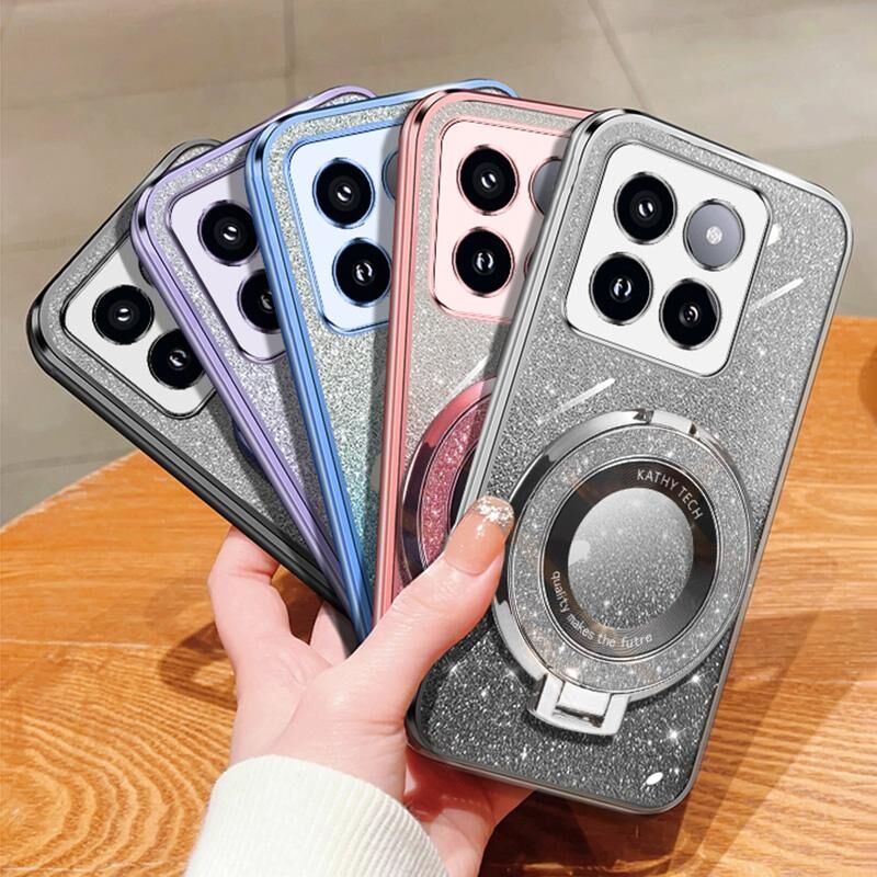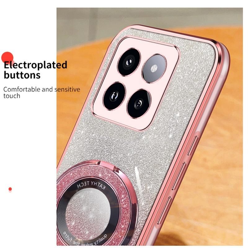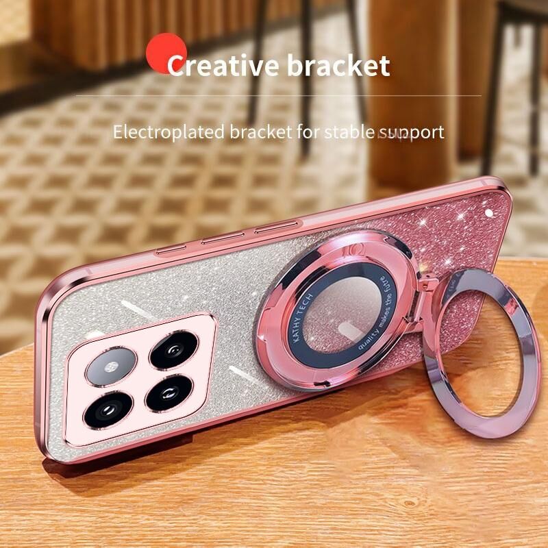 Για Xiaomi 14 Pro Επιμεταλλωμένο βαθμιδωτή Glitter Γύρος κάτοχος TPU τηλέφωνο υπόθεση (Sierra Blue)