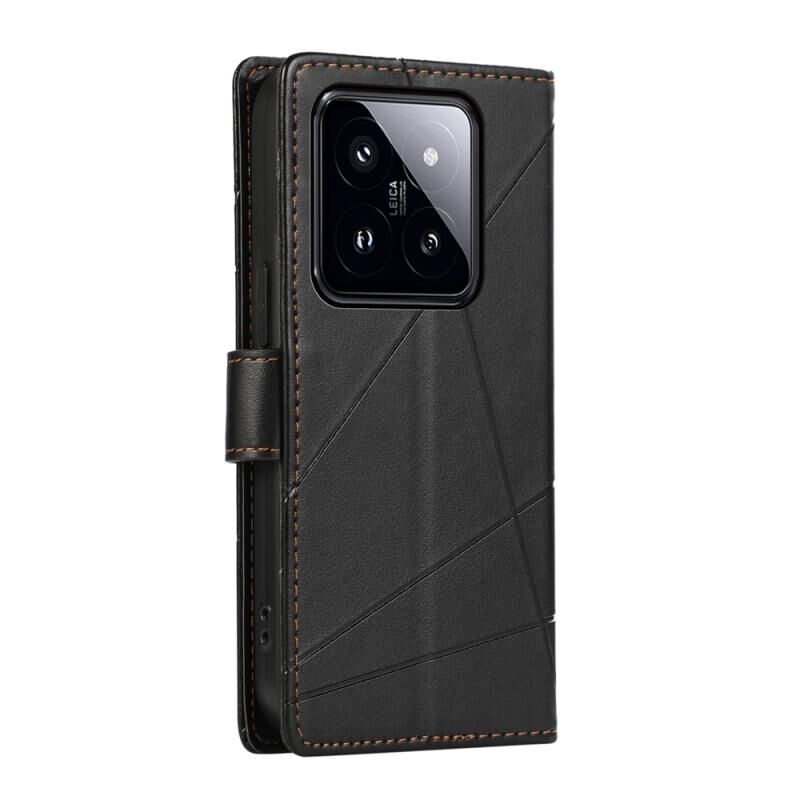 For Xiaomi 14 Pro PU Genuine Leather Texture Embossed Line Phone Case(Black)