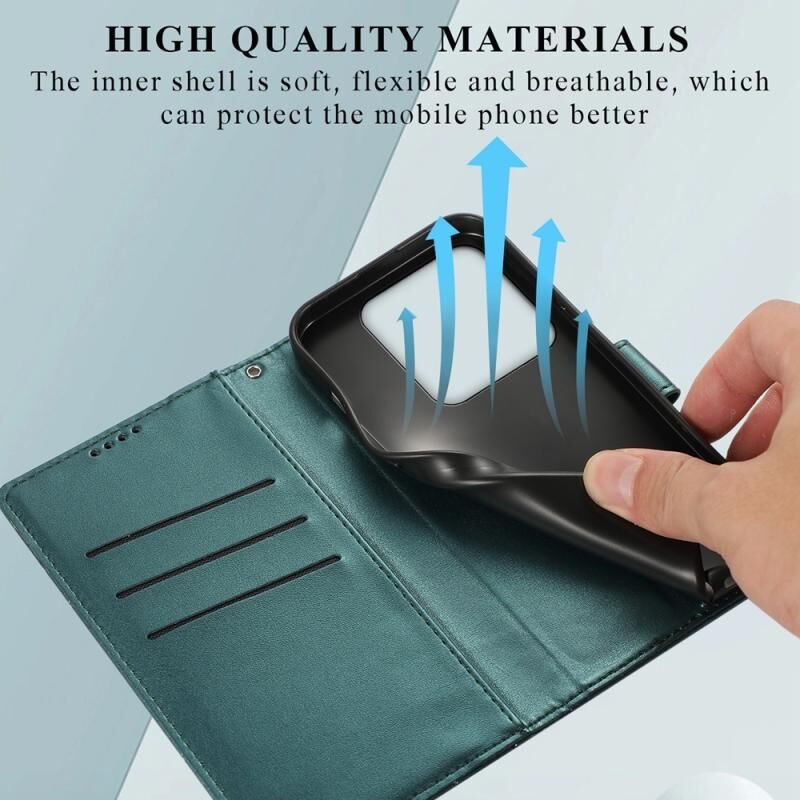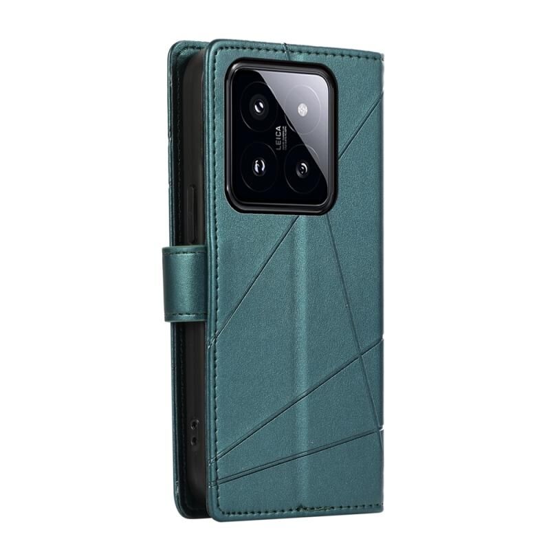 For Xiaomi 14 Pro PU Genuine Leather Texture Embossed Line Phone Case(Green)