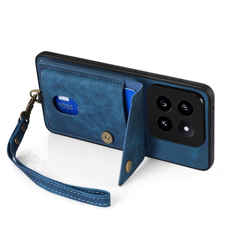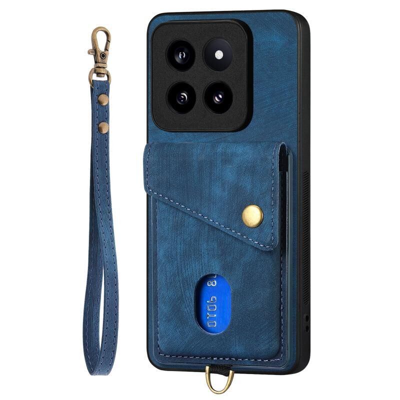 Για Xiaomi 14 Pro Ρετρό κάρτα πορτοφόλι πτυσσόμενο δερμάτινη θήκη τηλεφώνου με λουράκι (μπλε)