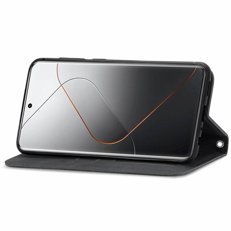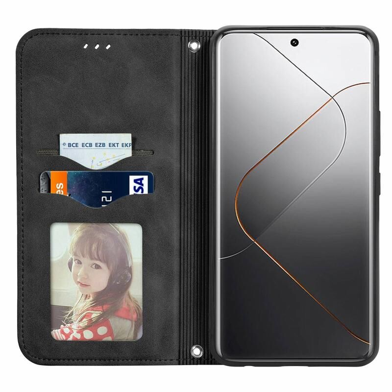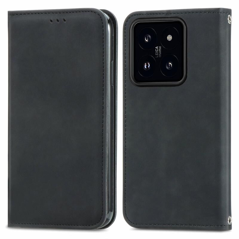 Θήκη τηλεφώνου δερμάτινη με μαγνητικό κλείσιμο και αίσθηση retro για Xiaomi 14 Pro (Μαύρο)