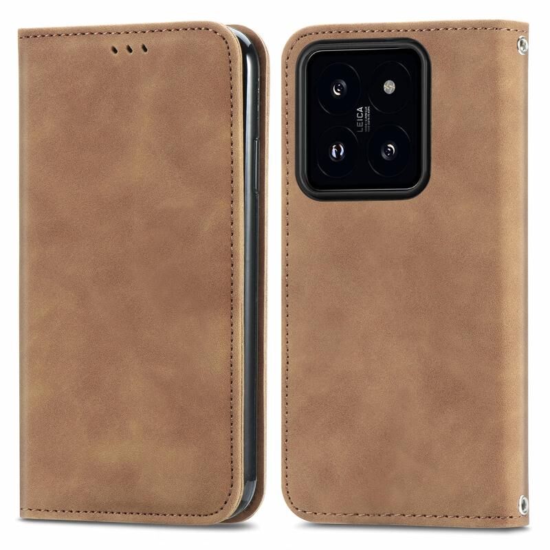 Θήκη τηλεφώνου δερμάτινη με μαγνητικό κλείσιμο και αίσθηση retro για Xiaomi 14 Pro (Μαύρο)