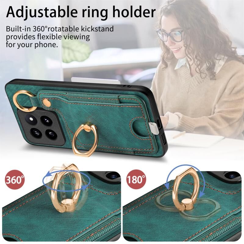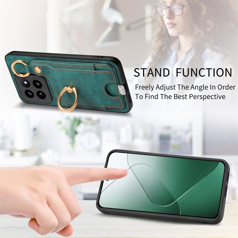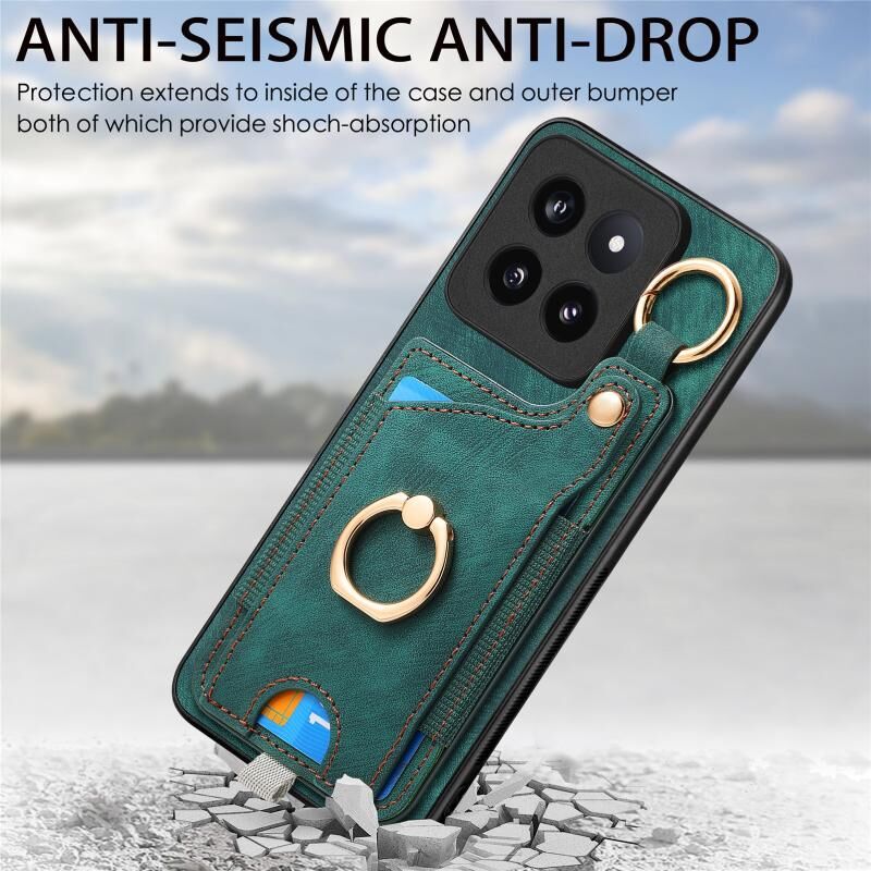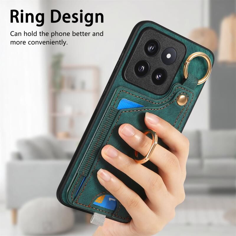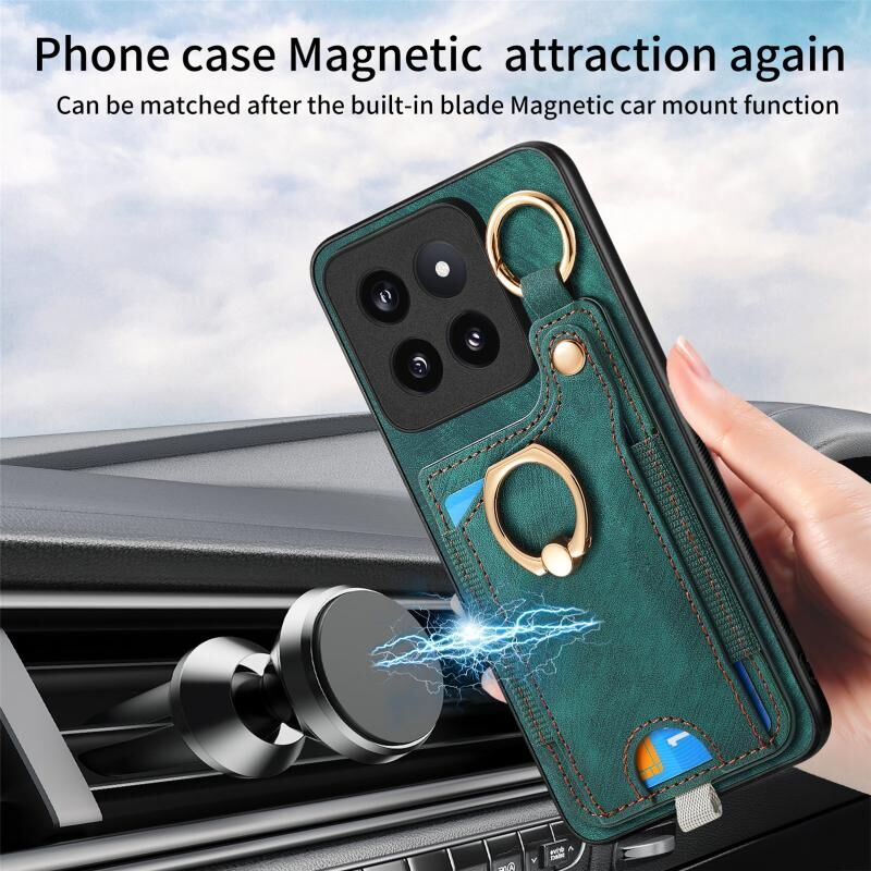 Για Xiaomi 14 Pro Ρετρό δέρμα αίσθηση δαχτυλίδι κάρτα τσάντα υπόθεση τηλεφώνου με Hang Loop (πράσινο)