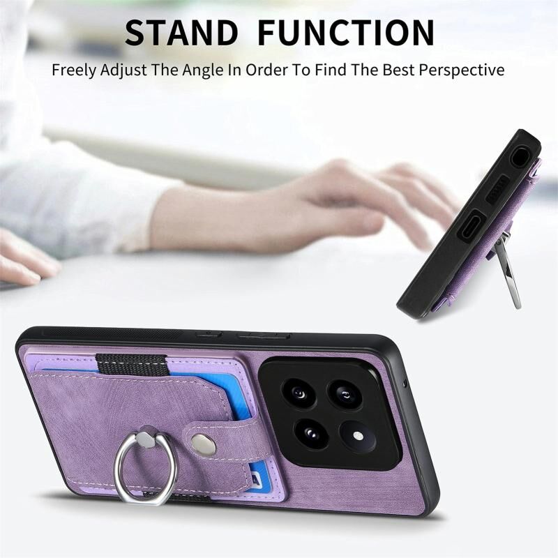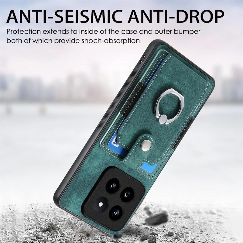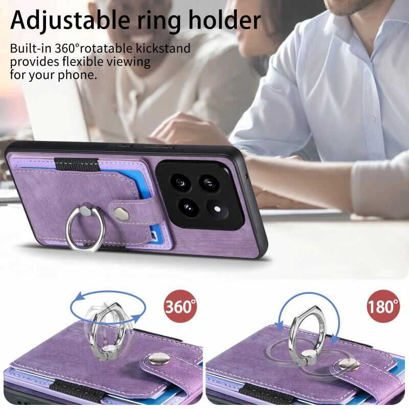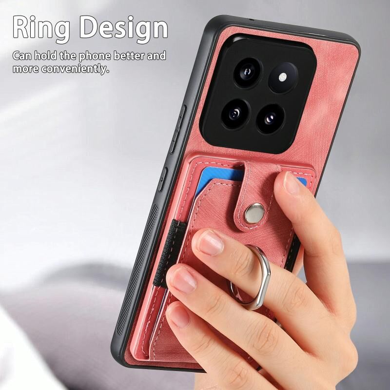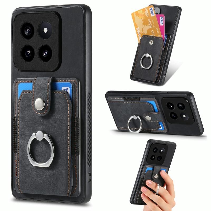 Για Xiaomi 14 Pro Ρετρό δέρμα αίσθηση δαχτυλίδι κάρτας πορτοφόλι υπόθεση τηλεφώνου (Μαύρο)
