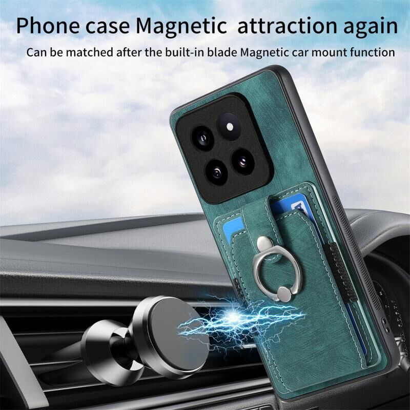 Για Xiaomi 14 Pro Ρετρό δέρμα αίσθηση δαχτυλίδι κάρτα πορτοφόλι υπόθεση τηλεφώνου (μπλε)