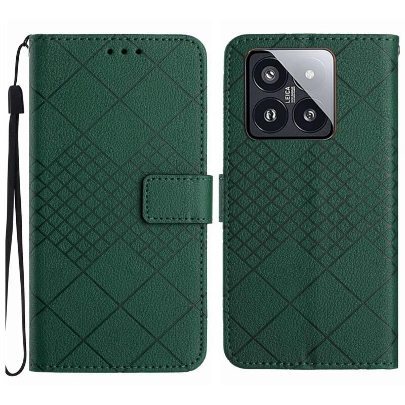 Για Xiaomi 14 Pro Rhombic Grid Texture Δερμάτινη θήκη τηλεφώνου (πράσινο)