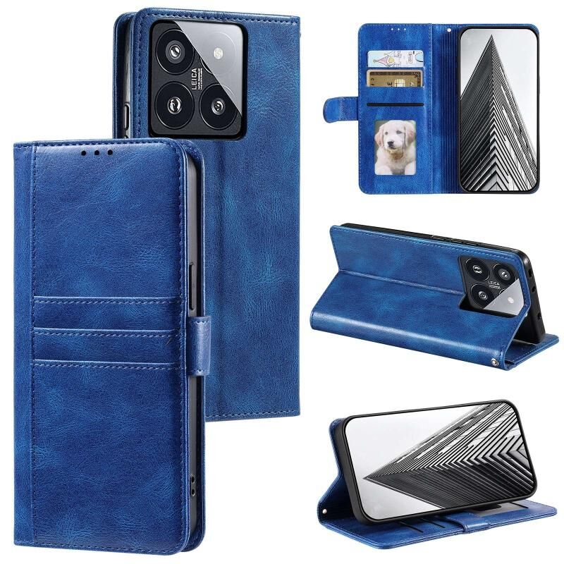 Για Xiaomi 14 Pro Απλή 6-Card πορτοφόλι δερμάτινη θήκη τηλεφώνου (μπλε)