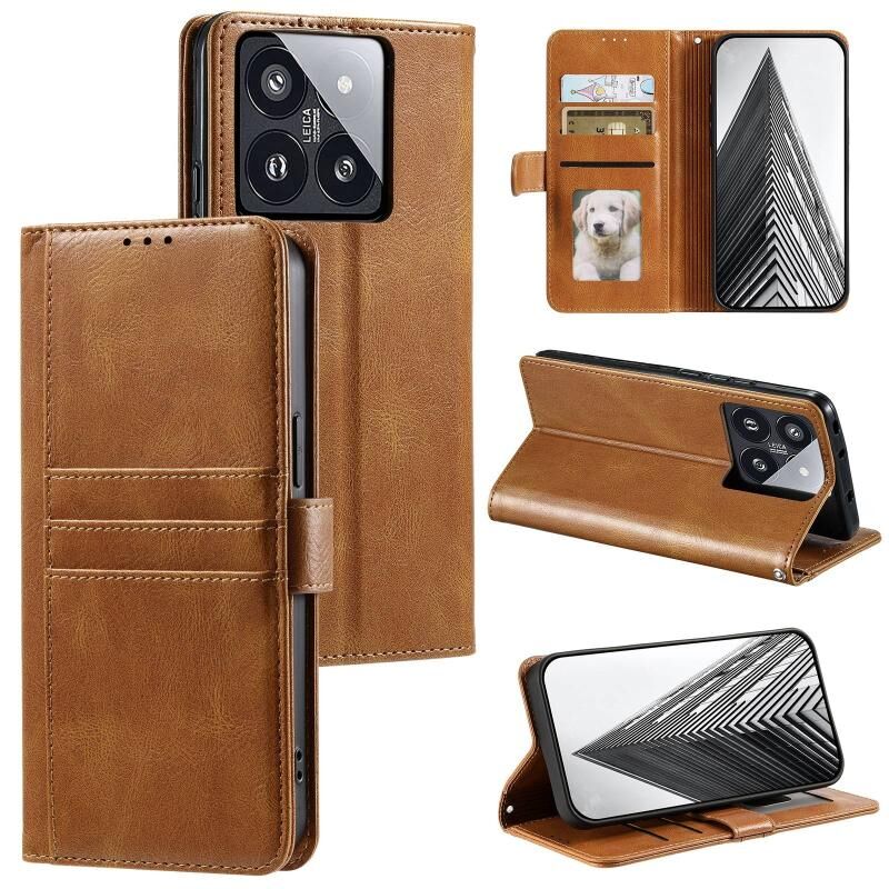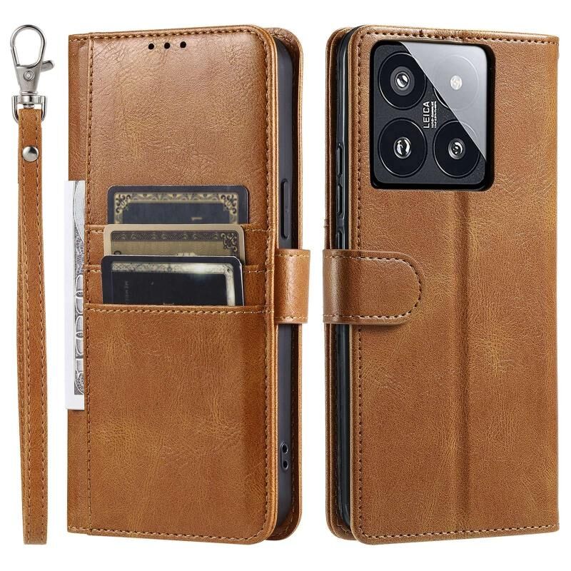 Για Xiaomi 14 Pro Απλή 6-Card πορτοφόλι δερμάτινη θήκη τηλεφώνου (καφέ)