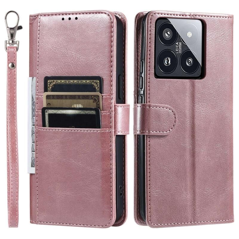 Για Xiaomi 14 Pro Απλή 6-Card πορτοφόλι δερμάτινη θήκη τηλεφώνου (Rose Gold)