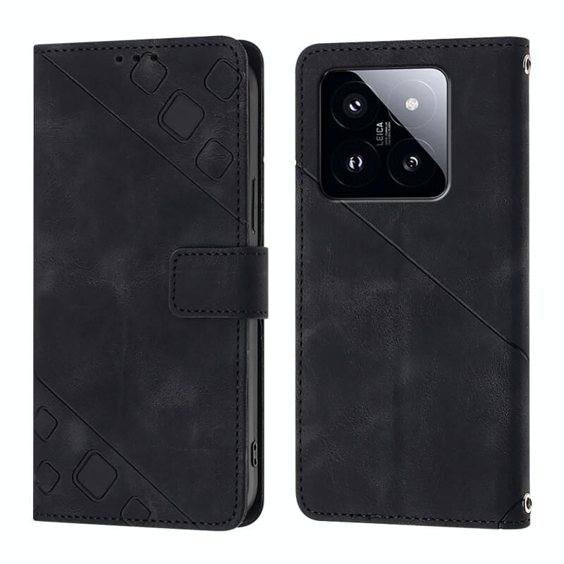 Για το Xiaomi 14 Pro Skin Feel ανάγλυφη δερμάτινη θήκη τηλεφώνου (μαύρο)