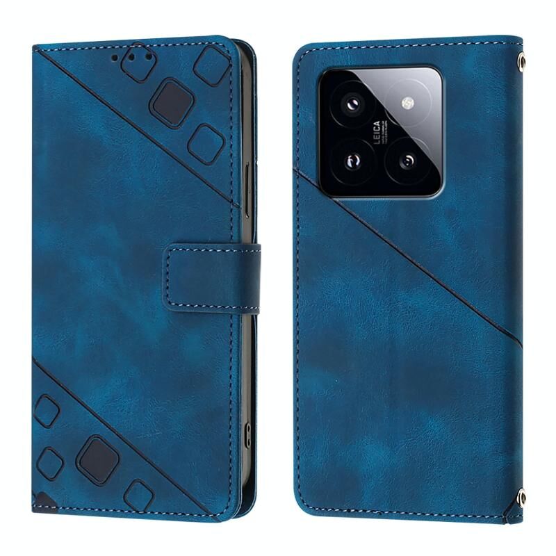 Για Xiaomi 14 Pro δέρμα αίσθηση ανάγλυφο δέρμα τηλέφωνο υπόθεση (μπλε)