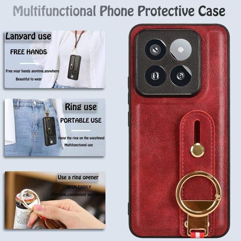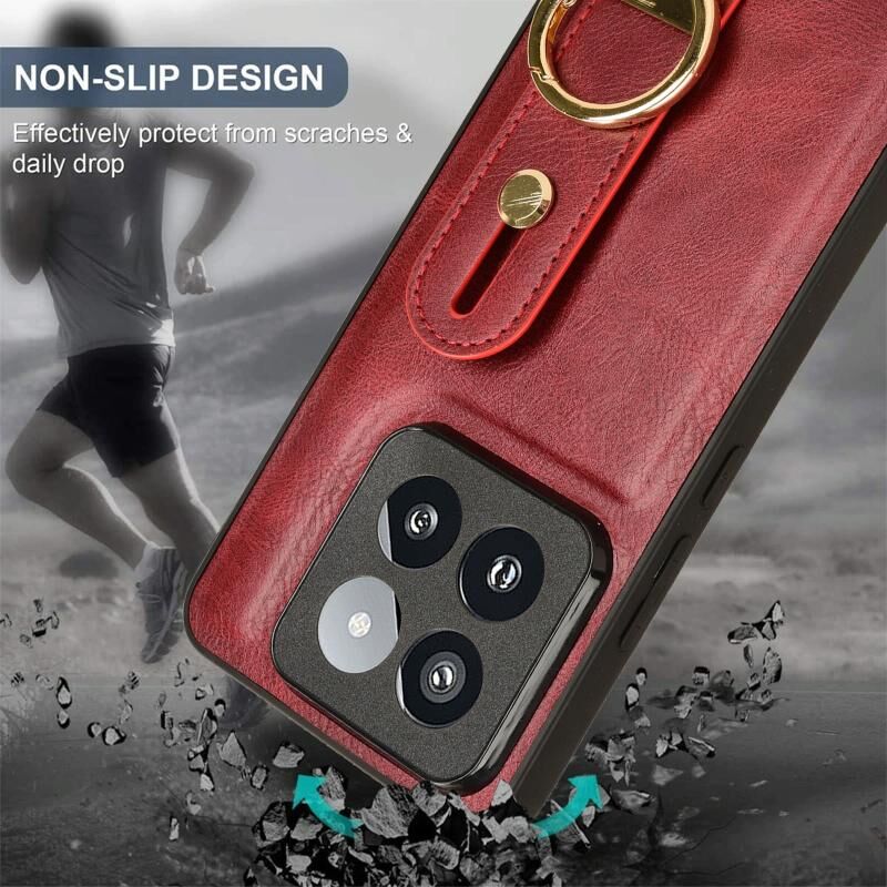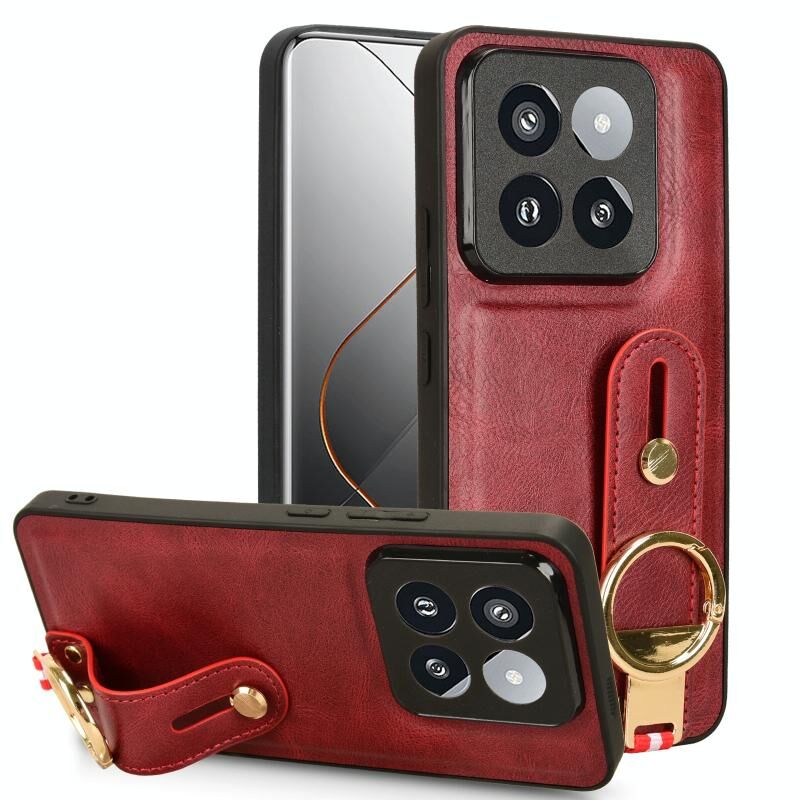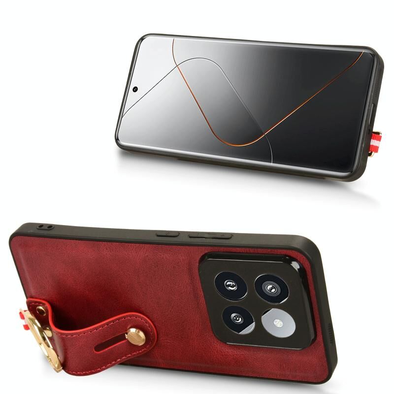 Για Xiaomi 14 Pro Wristband δέρμα πίσω υπόθεση τηλεφώνου (κόκκινο)