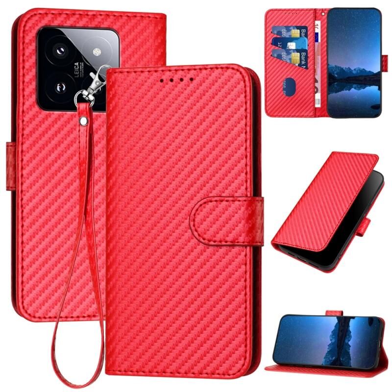 Για Xiaomi 14 Pro YX0070 Carbon Fiber πόρπη δερμάτινη θήκη τηλεφώνου με κορδόνι (κόκκινο)