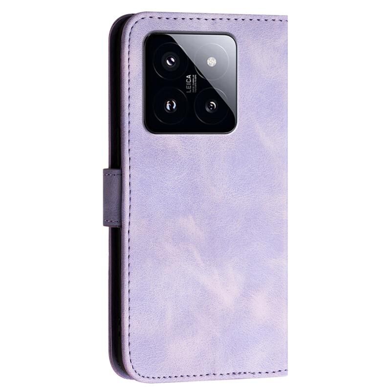 For Xiaomi 14 Pro YX0080 Grid Butterfly Embossed Pattern Leather Phone Case with Lanyard(Light Purple)