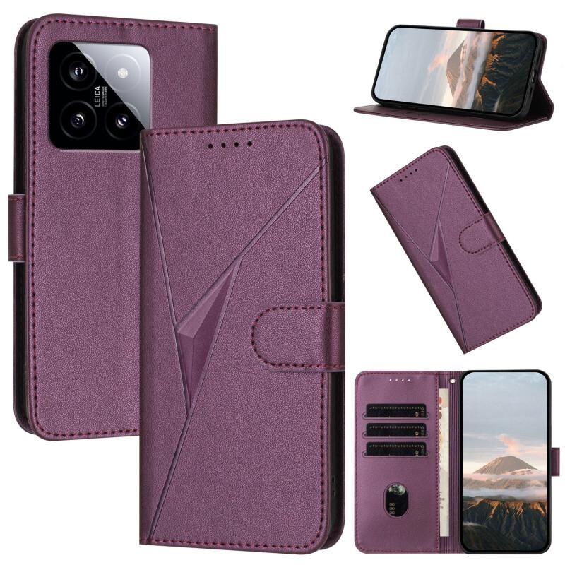 Θήκη τηλεφώνου Xiaomi 14 από δέρμα με σχέδιο τριγώνου και αγκράφα (Σκούρο Μωβ)