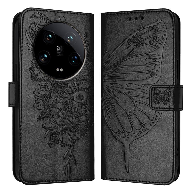 Για Xiaomi 14 Ultra 5G Παγκόσμια ανάγλυφη πεταλούδα δερμάτινη θήκη τηλεφώνου (μαύρο)