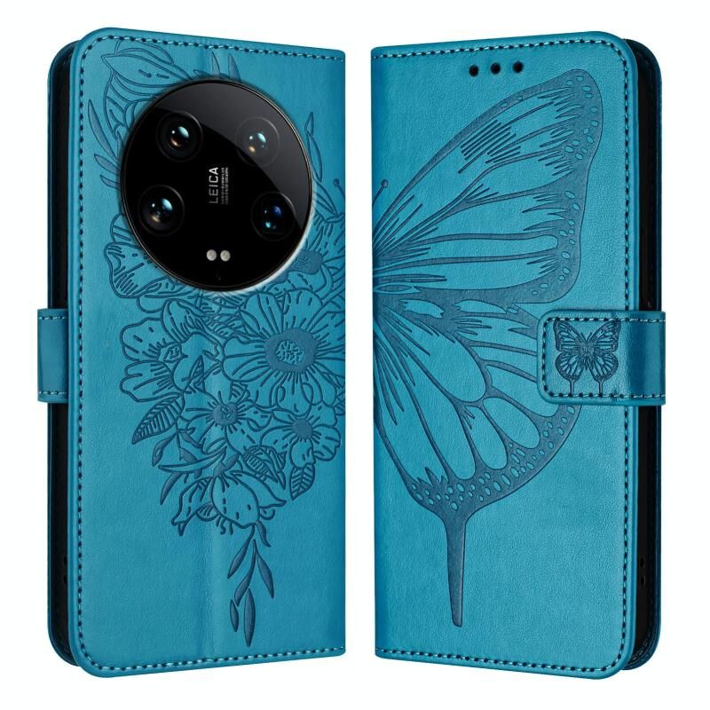 Για Xiaomi 14 Ultra 5G Παγκόσμια ανάγλυφη πεταλούδα δερμάτινη θήκη τηλεφώνου (μπλε)
