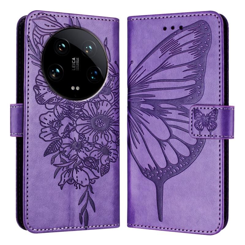 Για Xiaomi 14 Ultra 5G Παγκόσμια ανάγλυφη πεταλούδα δερμάτινη θήκη τηλεφώνου (μωβ)