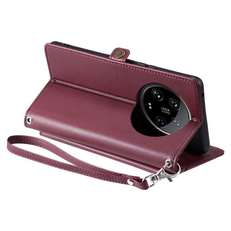 Για Xiaomi 14 Ultra 5G Πορτοφόλι Multi-card Slot Δερμάτινη θήκη τηλεφώνου με κορδόνι (κόκκινο κρασί)