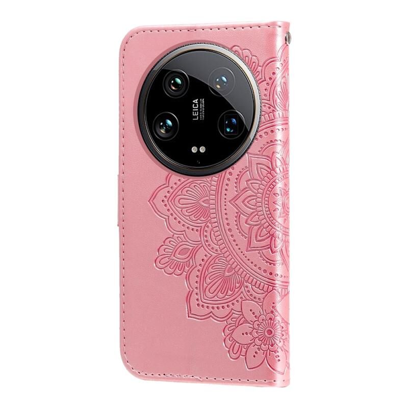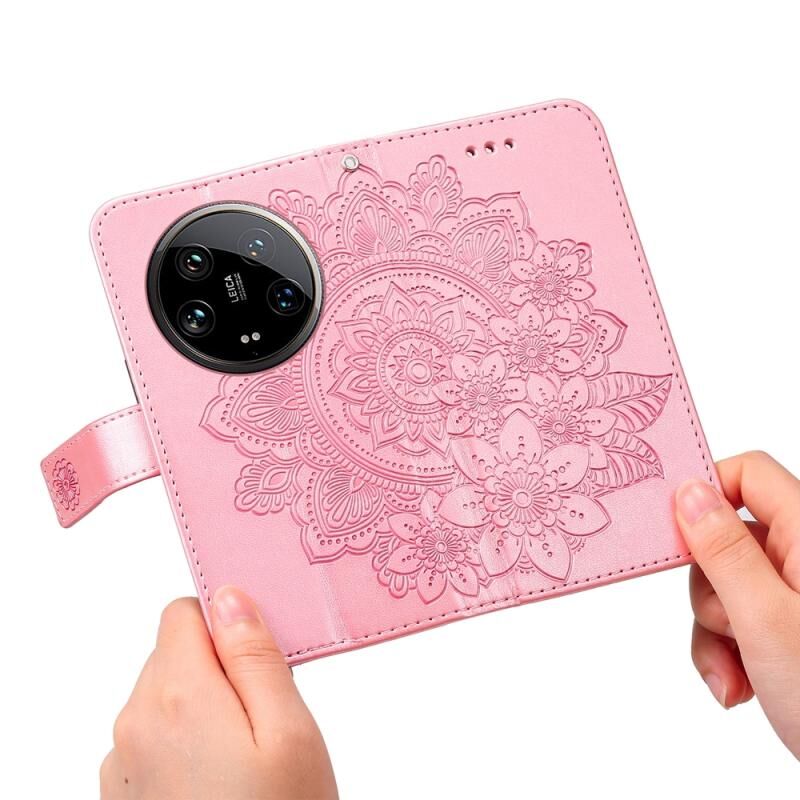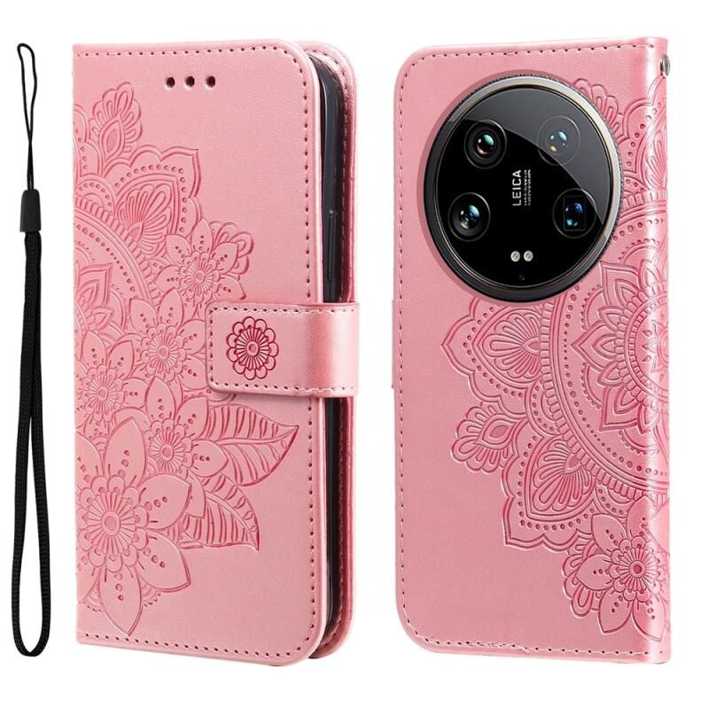 Για Xiaomi 14 Ultra 7-πέταλο λουλούδια ανάγλυφη δερμάτινη θήκη τηλεφώνου (Rose Gold)