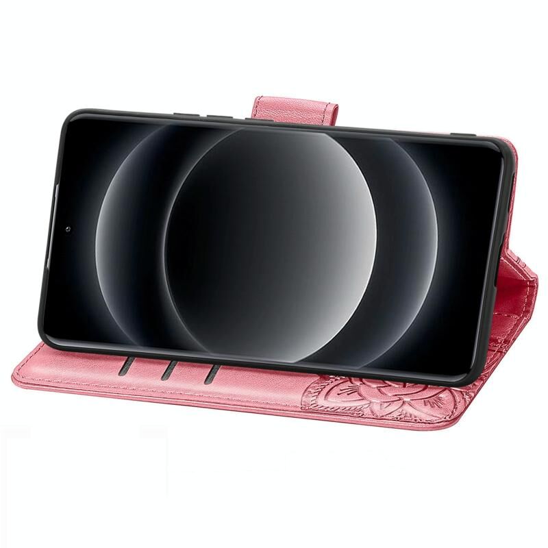 Θήκη τηλεφώνου από δέρμα με ανάγλυφο σχέδιο πεταλούδας και λουλουδιών για Xiaomi 14 Ultra (Ροζ)