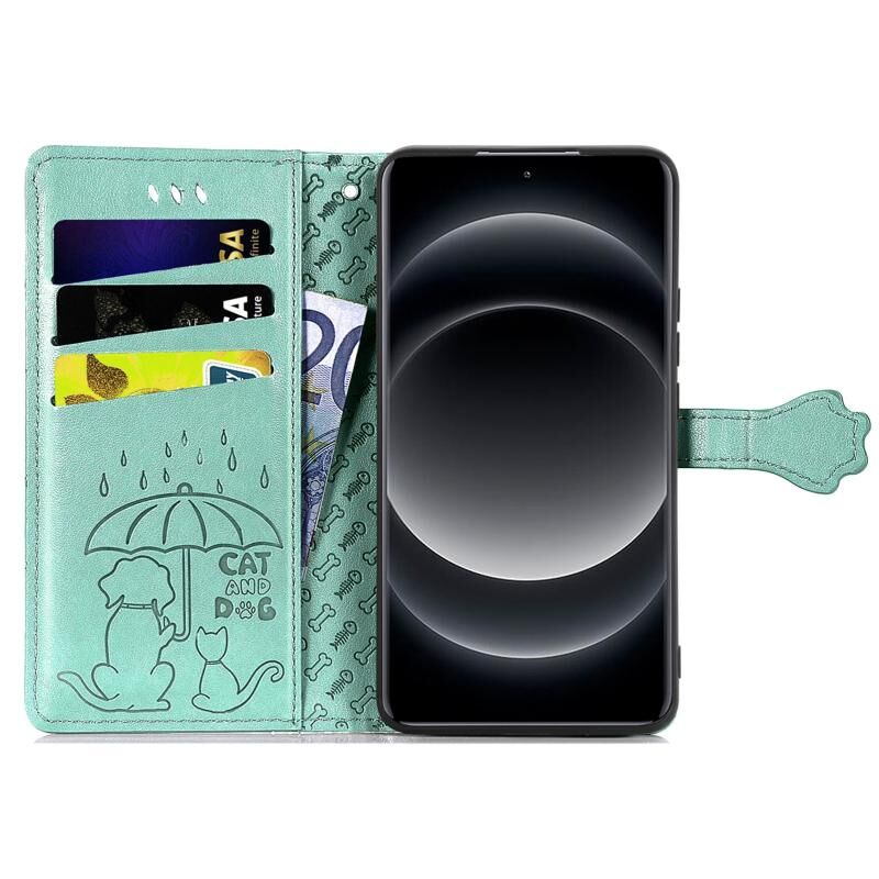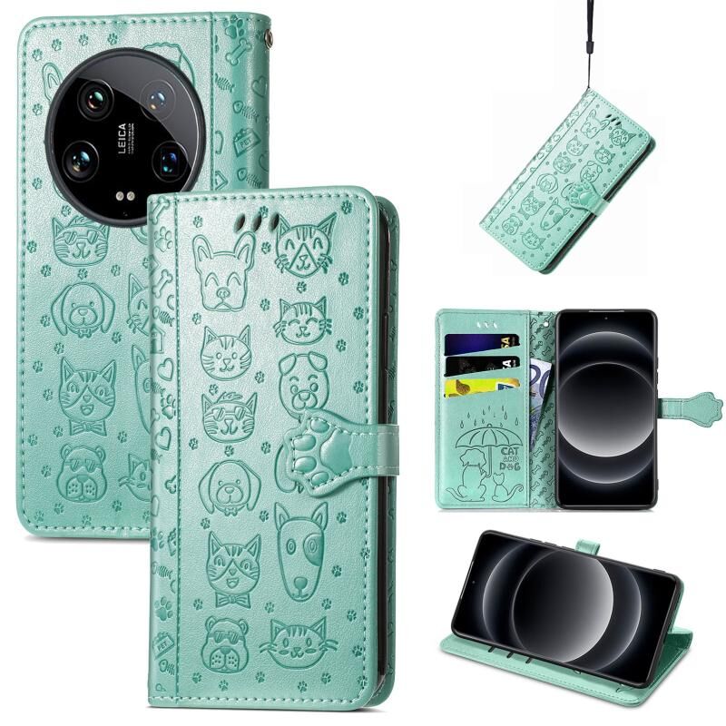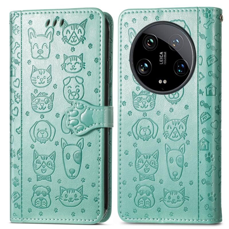 Θήκη τηλεφώνου από δέρμα με ανάγλυφο σχέδιο γάτας και σκύλου για Xiaomi 14 Ultra (Ροζ)