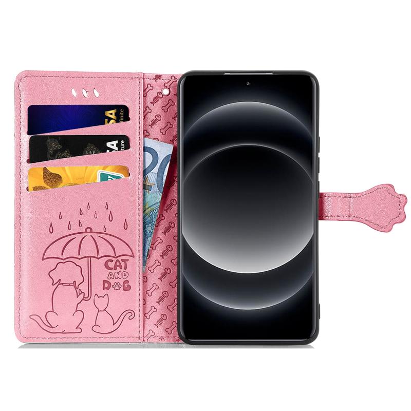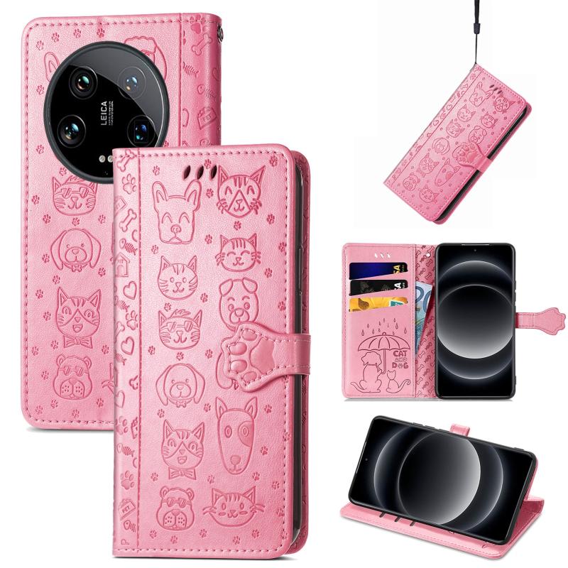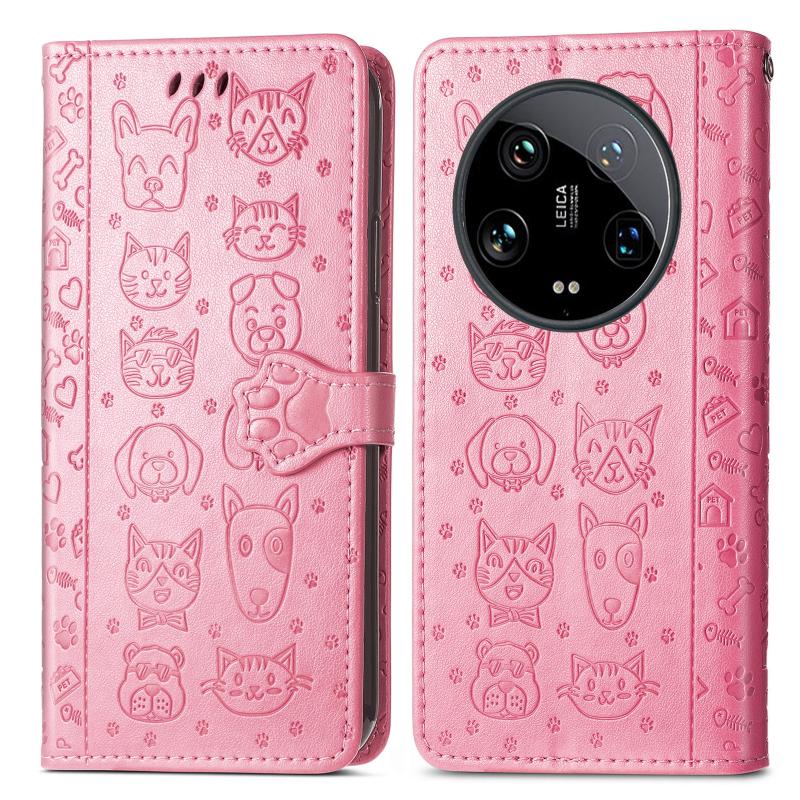 For Xiaomi 14 Ultra Cat and Dog Embossed Leather Phone Case(Pink)