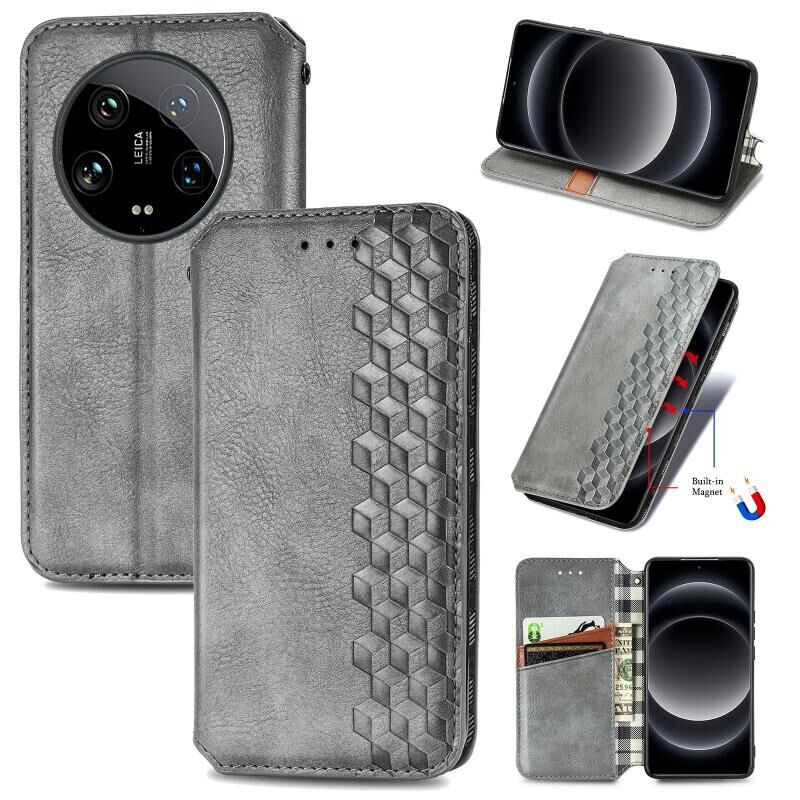 Για Xiaomi 14 Ultra Cubic Grid Πιεσμένο μαγνητική δερμάτινη θήκη τηλεφώνου (γκρι)