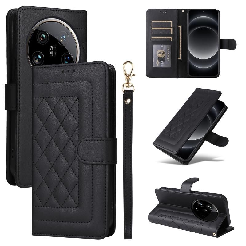 Για Xiaomi 14 Ultra Diamond Lattice δέρμα Flip τηλέφωνο υπόθεση (μαύρο)