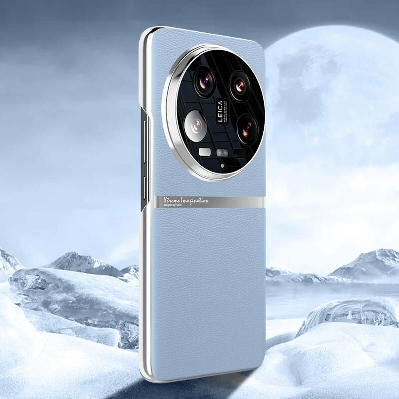 Για Xiaomi 14 Ultra Ηλεκτρολυτική επιμετάλλωση Plain-leather All-inclusive Shockproof τηλέφωνο υπόθεση (Bule)