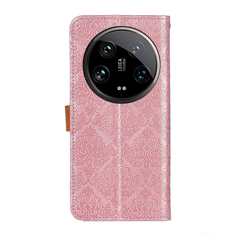 Για Xiaomi 14 Ultra Ευρωπαϊκή Floral ανάγλυφη δερμάτινη θήκη τηλεφώνου (ροζ)
