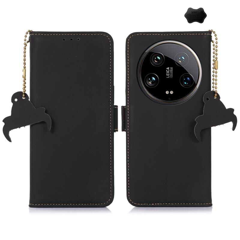 Θήκη τηλεφώνου από γνήσιο δέρμα με μαγνητική προστασία RFID για Xiaomi 14 Ultra (Μαύρο)