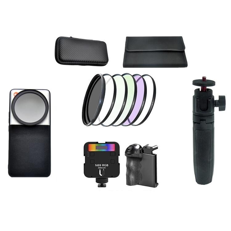 Σετ 6 σε 1 SLR: Θήκη Κινητού, Κουτί Αποθήκευσης, Ρυθμιζόμενη λαβή με φως πλήρωσης, τρίποδο, UV, μεταλλικό κάλυμμα φακού, μεταλλικό κάλυμμα ευρείας γωνίας, τσάντα αποθήκευσης φίλτρου ανθεκτική στη σκόνη
