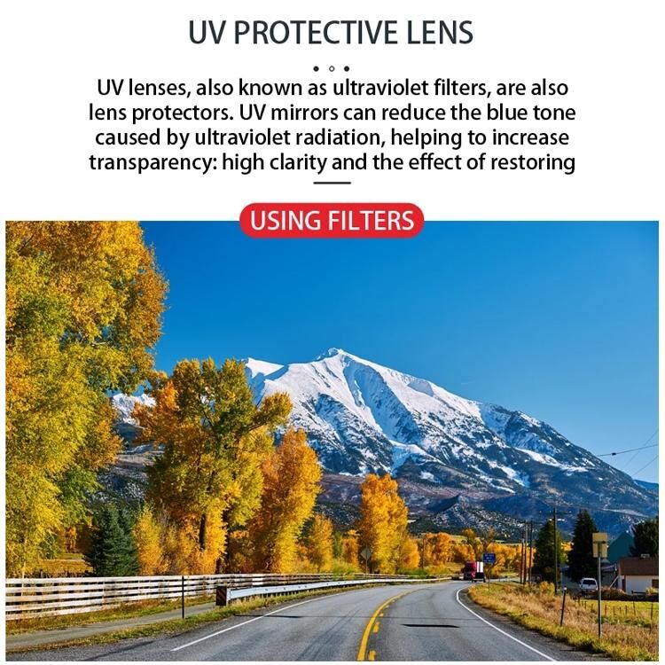 1. Φίλτρο UV: Κατάλληλο για λήψεις στη θάλασσα, στα βουνά, στα χιονισμένα πεδία και σε ανοιχτούς χώρους κ.λπ. Μπορεί να μειώσει τον μπλε τόνο που προκαλείται από τις υπεριώδεις ακτίνες. Ταυτόχρονα, για την κάμερα, μπορεί επίσης να εξαλείψει τις παρεμβολές των υπεριωδών ακτίνων στο CCD, γεγονός που βοηθά στη βελτίωση της ευκρίνειας και της χρωματικής απόδοσης.