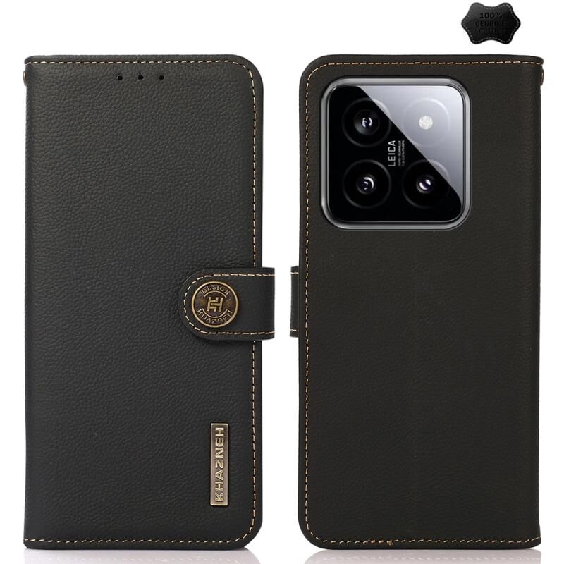 For Xiaomi 14 Ultra KHAZNEH Custer Texture RFID Genuine Leather Phone Case(Black)