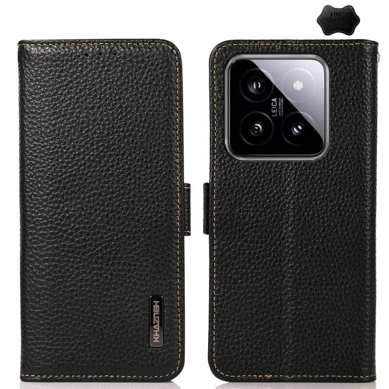 Θήκη τηλεφώνου Xiaomi 14 Ultra KHAZNEH με μαγνητική πλευρά, γνήσιο δέρμα Litchi, RFID (Μαύρο)