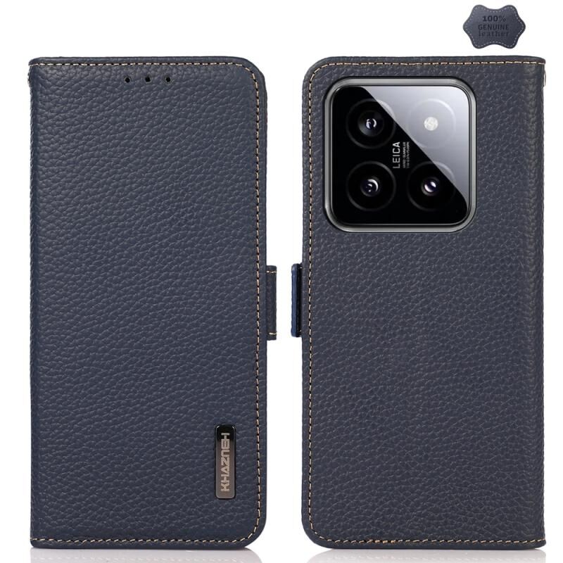 Θήκη τηλεφώνου Xiaomi 14 Ultra KHAZNEH με μαγνητική πλευρά, γνήσιο δέρμα Litchi, RFID (Μαύρο)