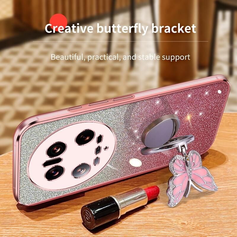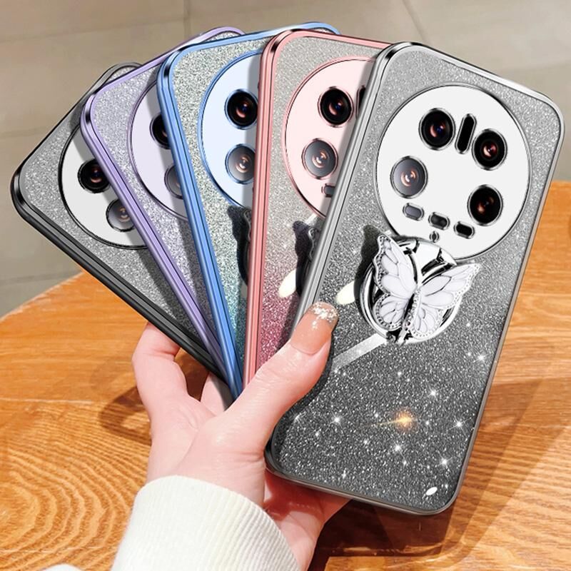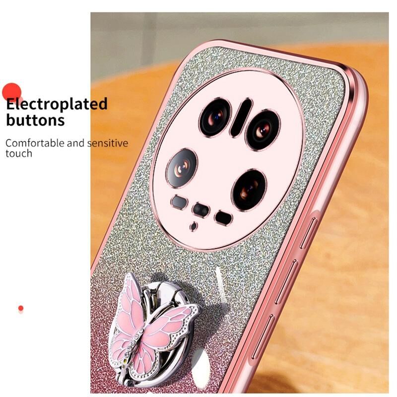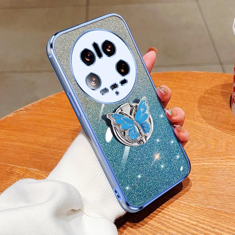 For Xiaomi 14 Ultra Plated Gradient Glitter Butterfly Holder TPU Phone Case(Sierra Blue)