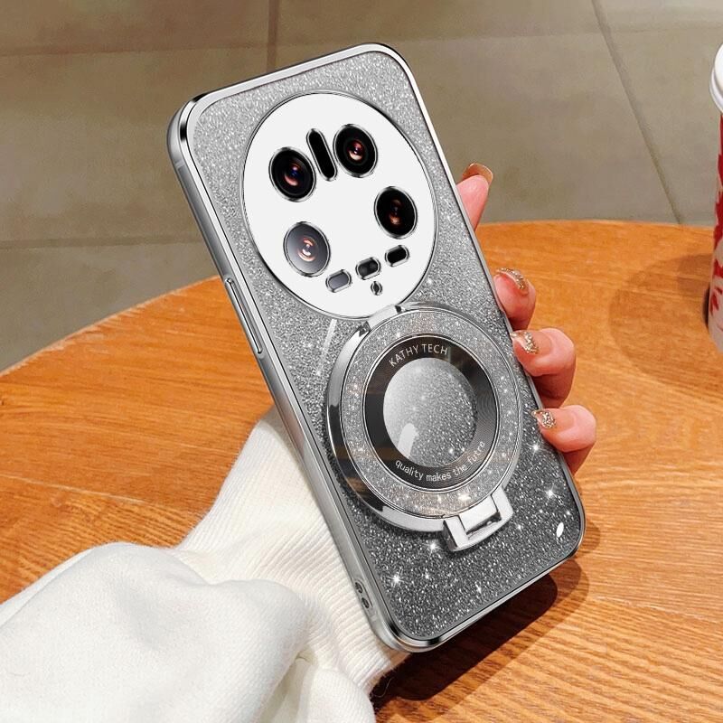 Για Xiaomi 14 Ultra επιμεταλλωμένο διαβάθμιση Glitter στρογγυλό κάτοχος TPU τηλέφωνο υπόθεση (ασημί)