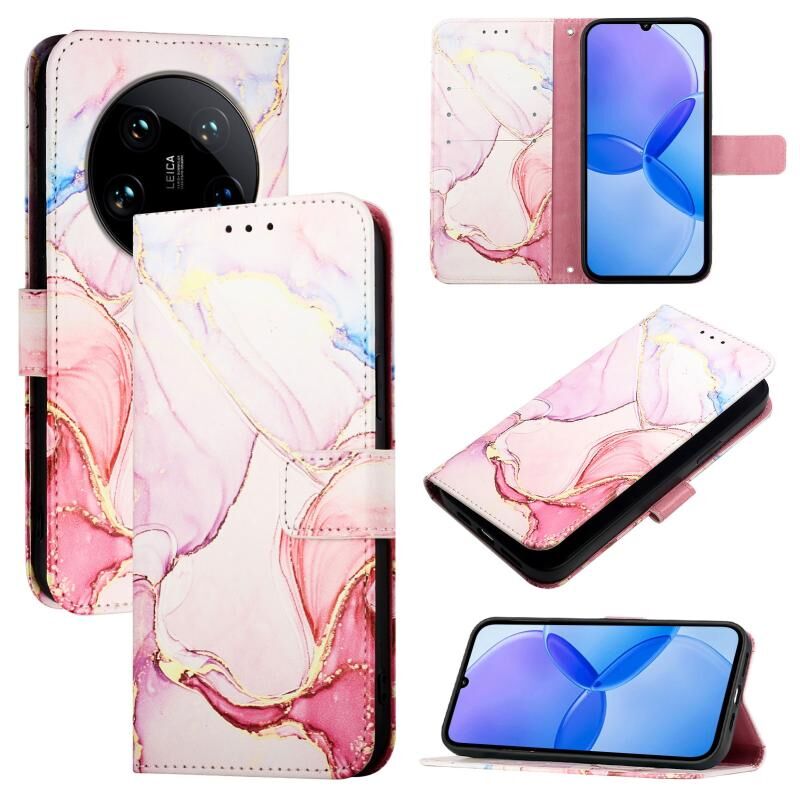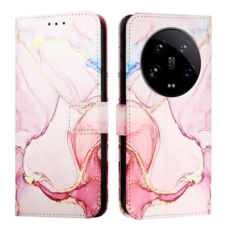 Θήκη τηλεφώνου από δέρμα με σχέδιο μάρμαρου για Xiaomi 14 Ultra PT003 (Ροζ Μωβ Χρυσό)