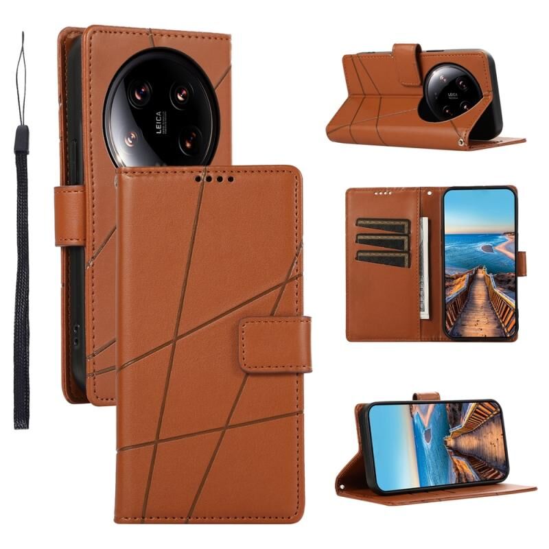 Θήκη τηλεφώνου Xiaomi 14 Ultra από γνήσιο δέρμα PU με ανάγλυφη υφή και λεπτομέρειες (Καφέ)
