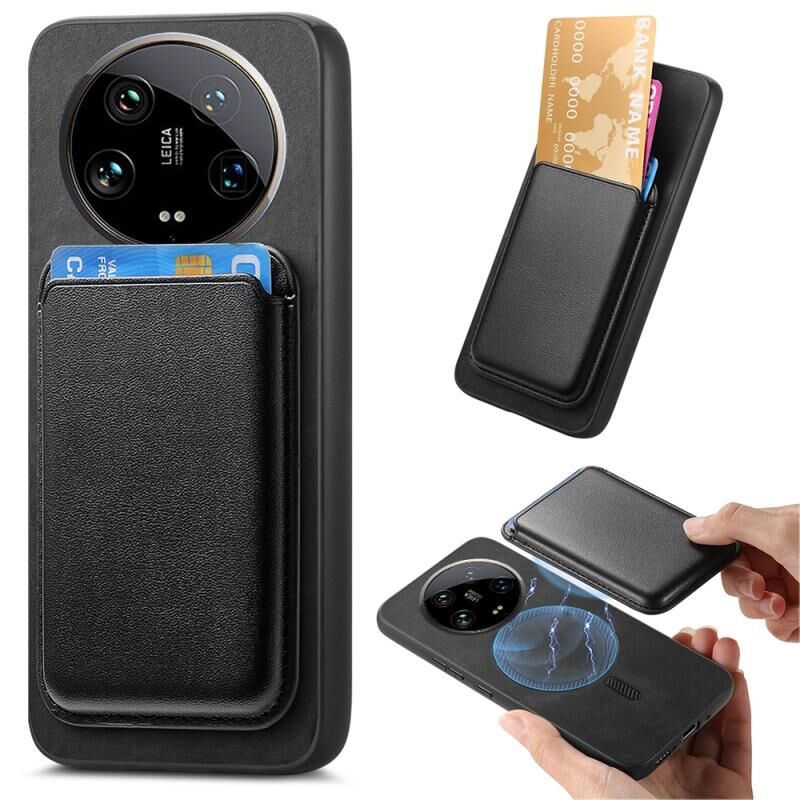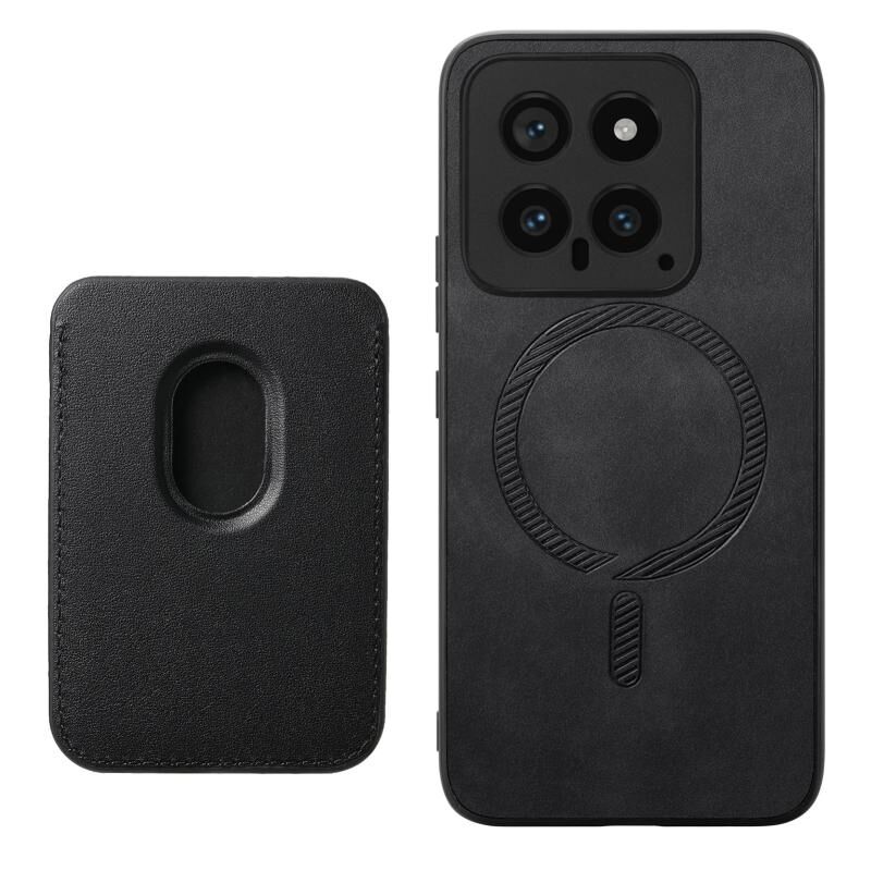 For Xiaomi 14 Ultra Retro Magsafe Card Bag PU Back Cover Phone Case(Black)